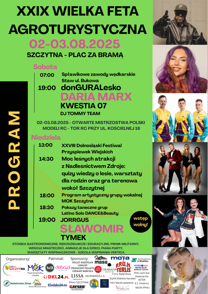 Po raz 29. nasza malownicza Szczytna stanie się tętniącym życiem centrum muzyki, turystyki, leśnej przygody i regionalnych smaków! Przed nami dni pełne atrakcji, tradycji i wyśmienitej zabawy – zarówno dla mieszkańców, jak i turystów.