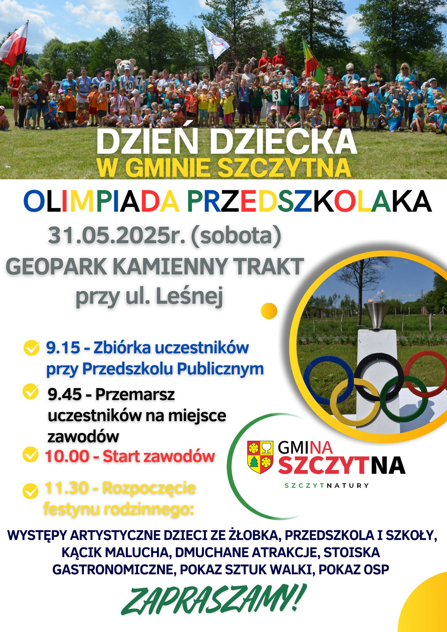 Zapraszamy wszystkie dzieci z rodzinami na wyjątkowe wydarzenie pełne radości i wspólnej zabawy. Połączymy święto najmłodszych z emocjonującą olimpiadą, w której dzieci będą mogły spróbować swoich sił w różnych konkurencjach sportowych ![]()