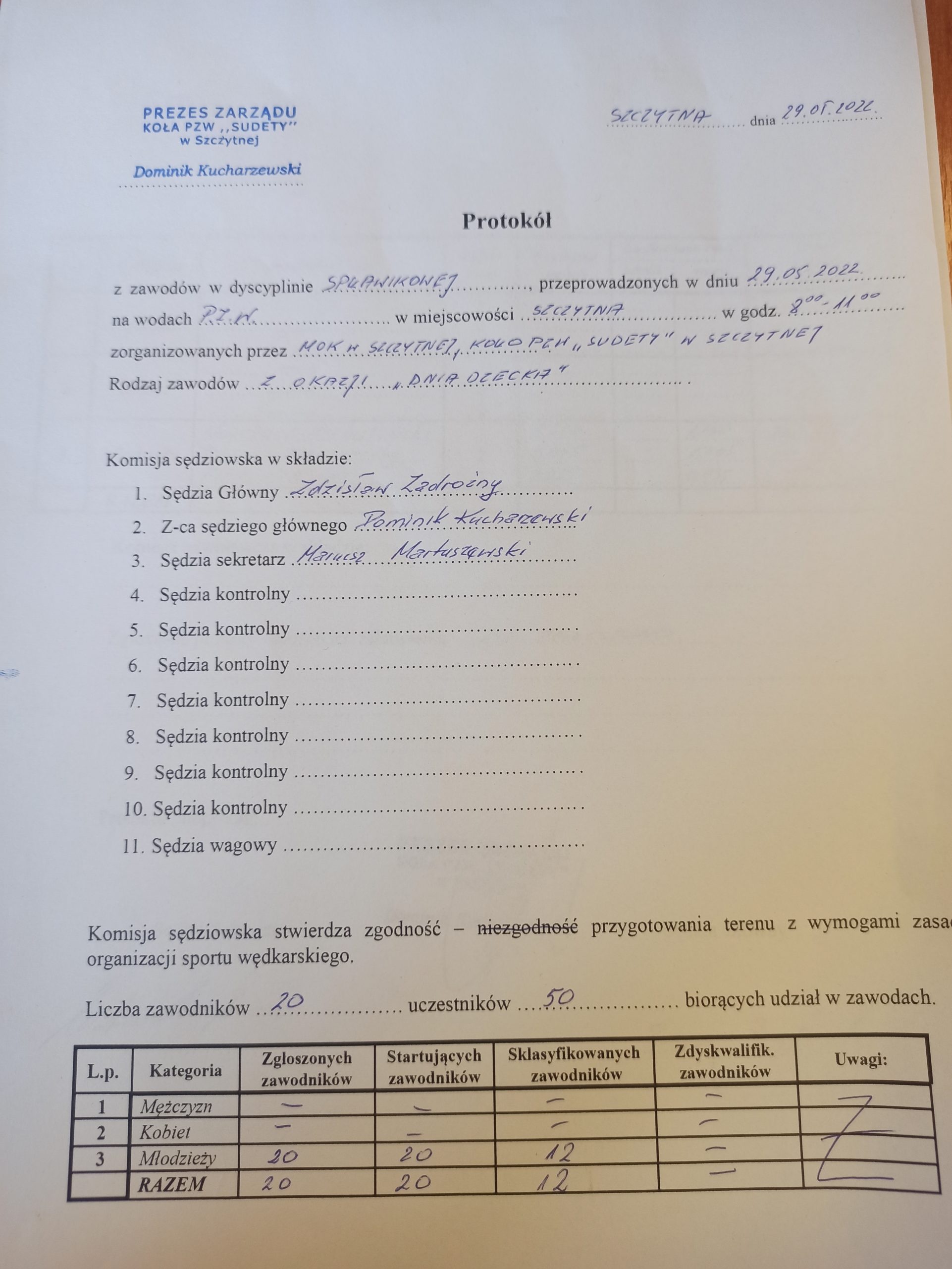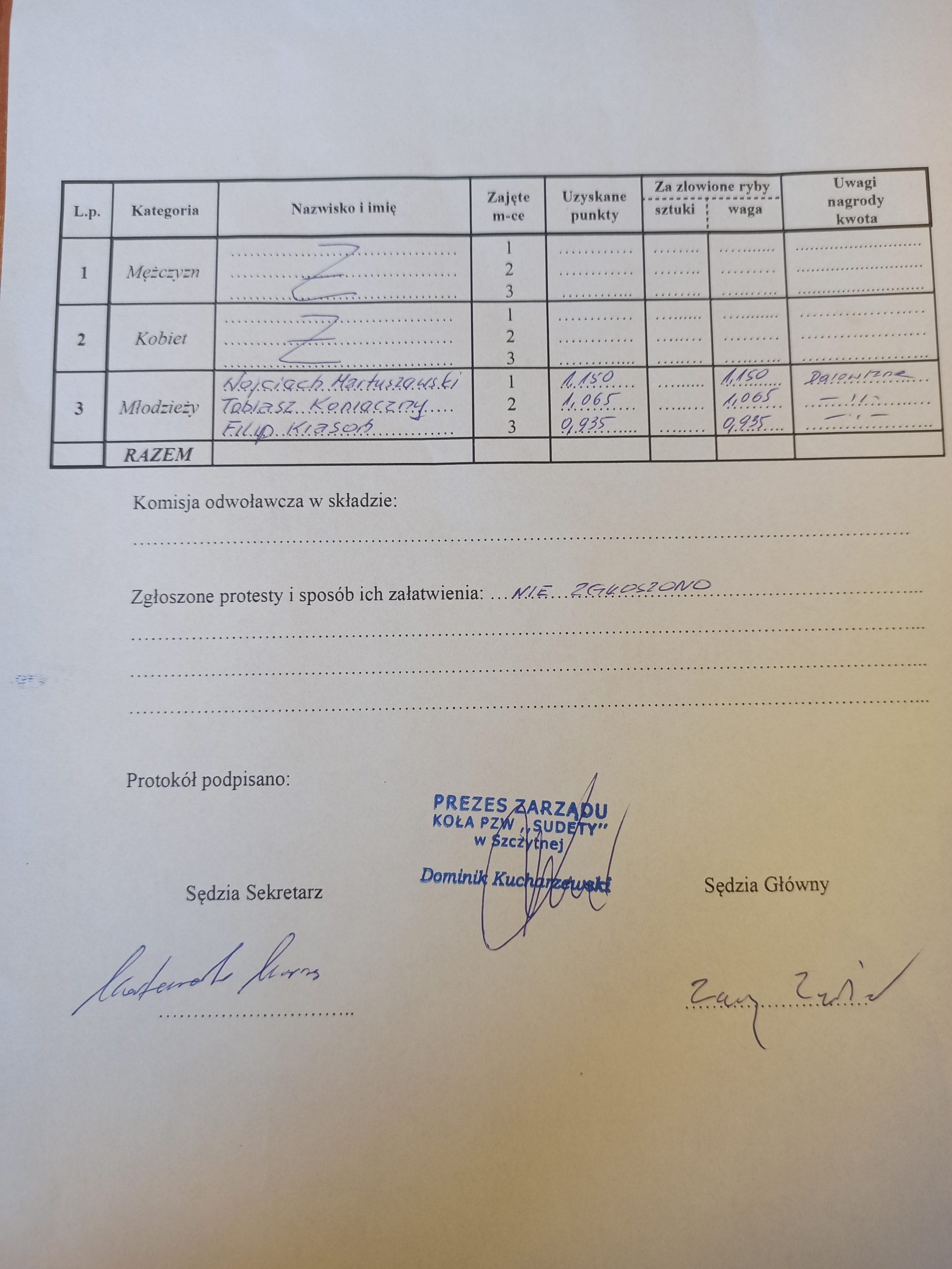 Spławikowe zawody wędkarskie z okazji dnia dziecka w Szczytnej. Zwycięscy: I- Wojciech Martuszewski II- Tobiasz Konieczny III- Filip Krasoń